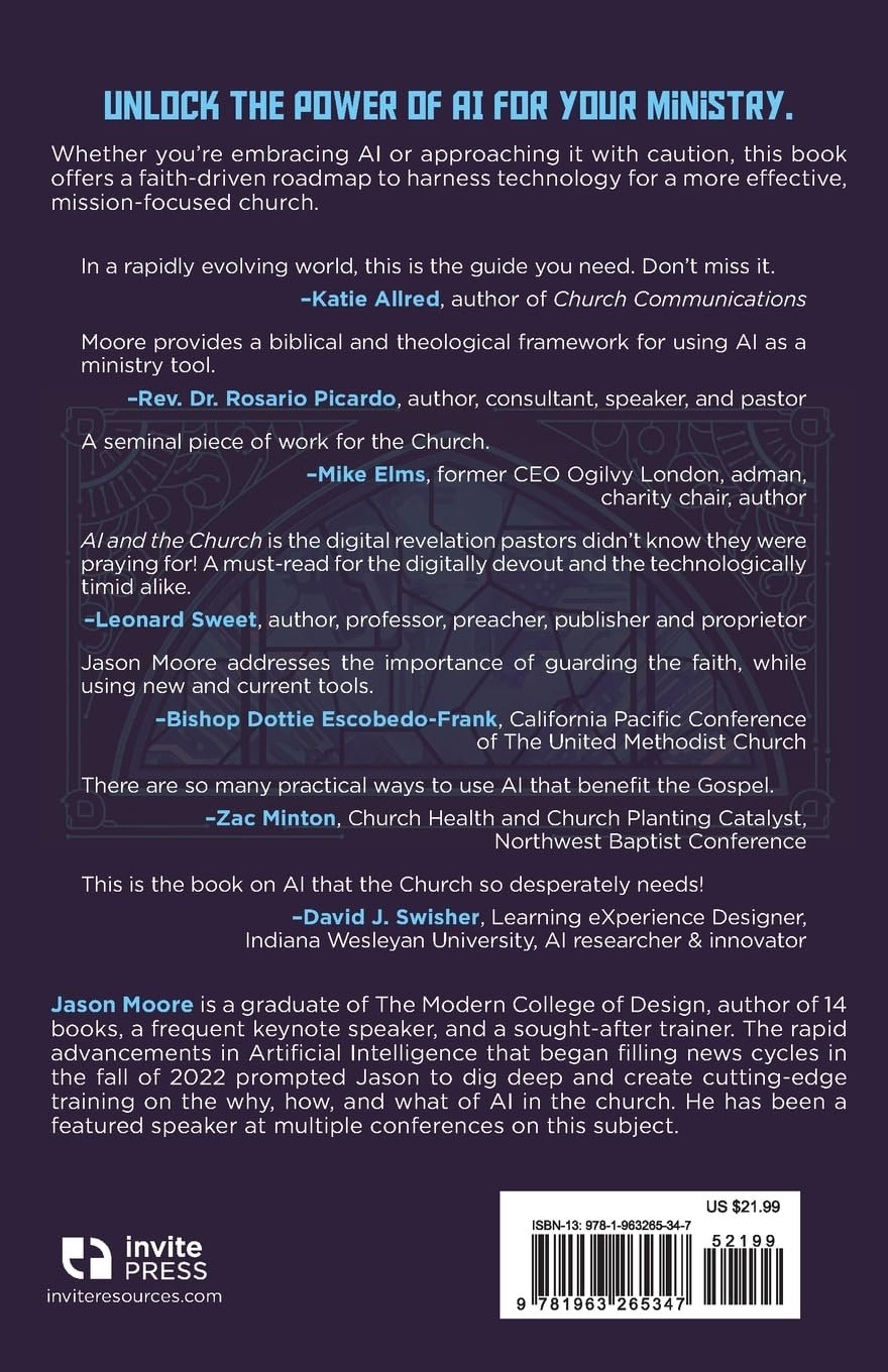 As artificial intelligence continues to reshape industries, communities, and personal lives, the church stands at a critical crossroads. How should we respond to this transformative technology? What role can AI play in ministry, and what are the ethical boundaries we must respect? AI and the Church by Jason Moore tackles these questions head-on, offering church leaders a thoughtful, practical, and faith-driven roadmap.